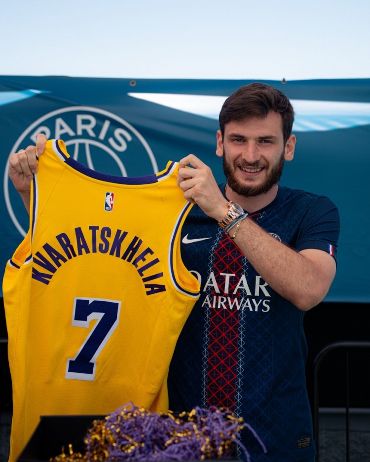 🏀🤝⚽ 大巴黎球员登贝莱、克瓦拉茨赫利亚等人获赠湖人球衣