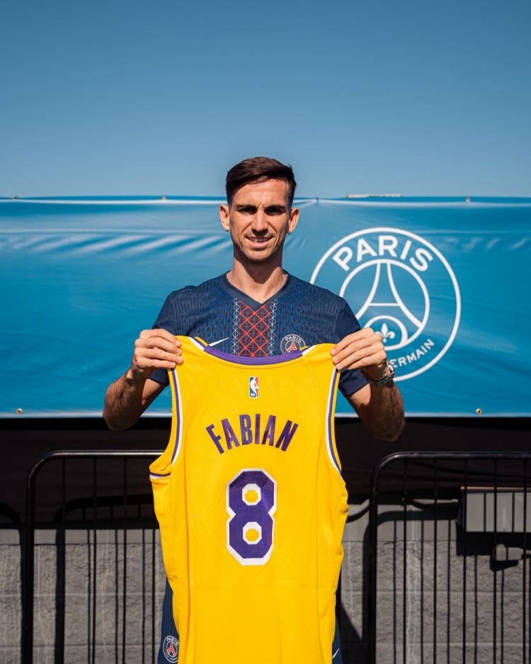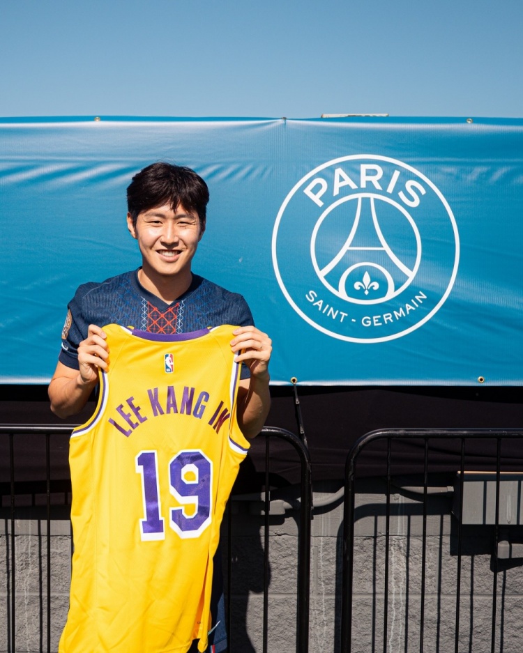 目前巴黎圣日耳曼在美国参加世俱杯,而他们前两场比赛都是在洛杉矶进行,下一场将移师西雅图。球队在洛杉矶的最后一天,也收到洛杉矶湖人的特别礼物。队中登贝莱、克瓦拉茨赫利亚、法比安、李刚仁还有萨福诺夫等人获赠湖人专属球衣。